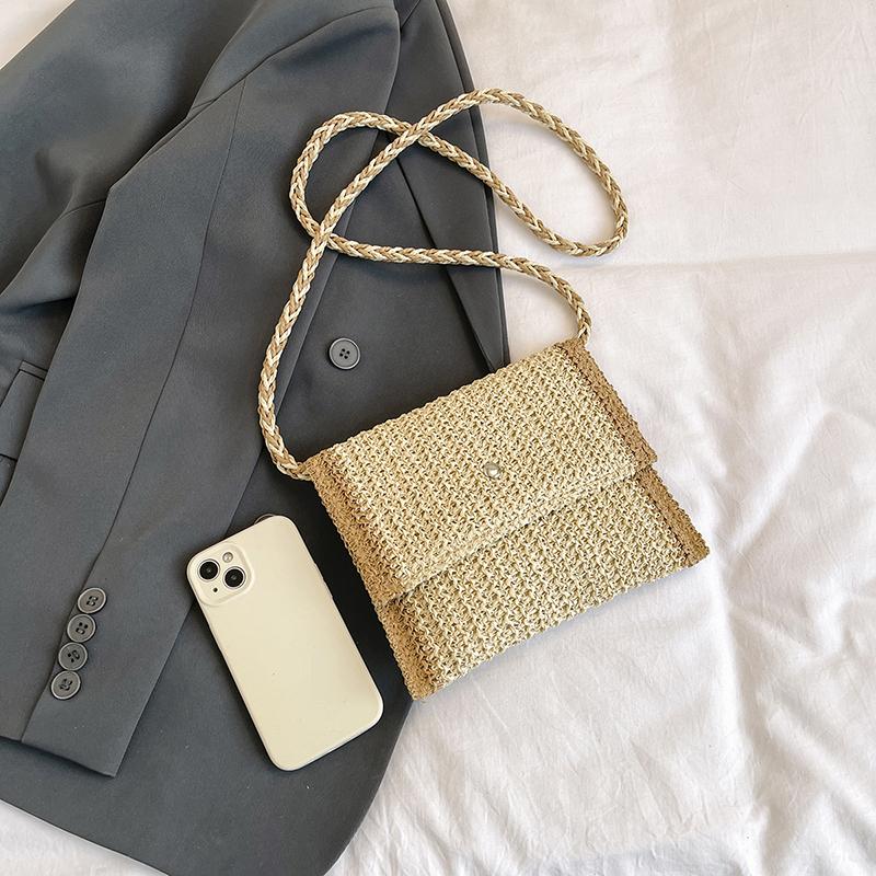 Однотонная плетеная квадратная сумка небольшого размера, модная сумка через плечо