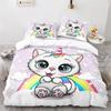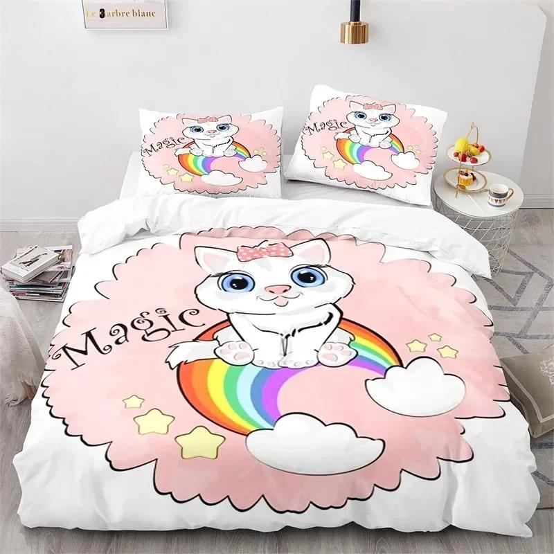 Детский пододеяльник с единорогом, двойной комплект постельного белья с изображением волшебного животного из микрофибры, милый радужно-кошачий пододеяльник для девочек-подростков, подарок