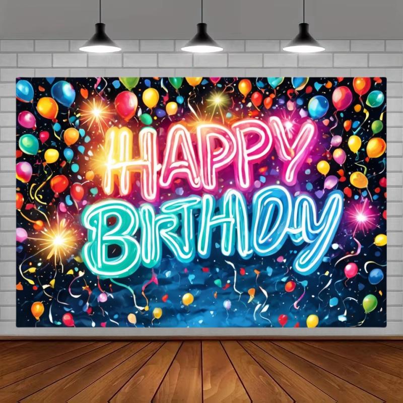 Неоновый фон с днем рождения, светящийся воздушный шар, брызги, баннер на день рождения, ткань, красочная домашняя фотография, украшения для вечеринки — купить товар онлайн с бесплатной доставкой по всему миру!