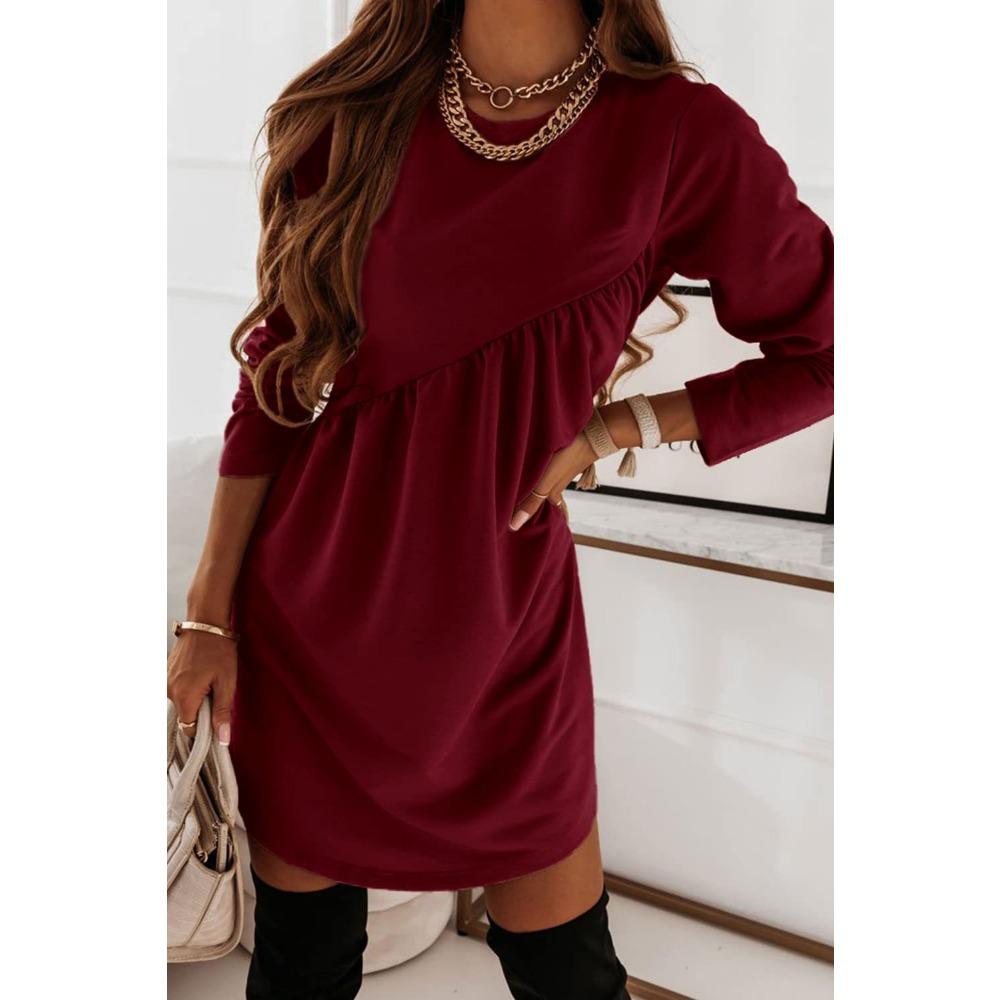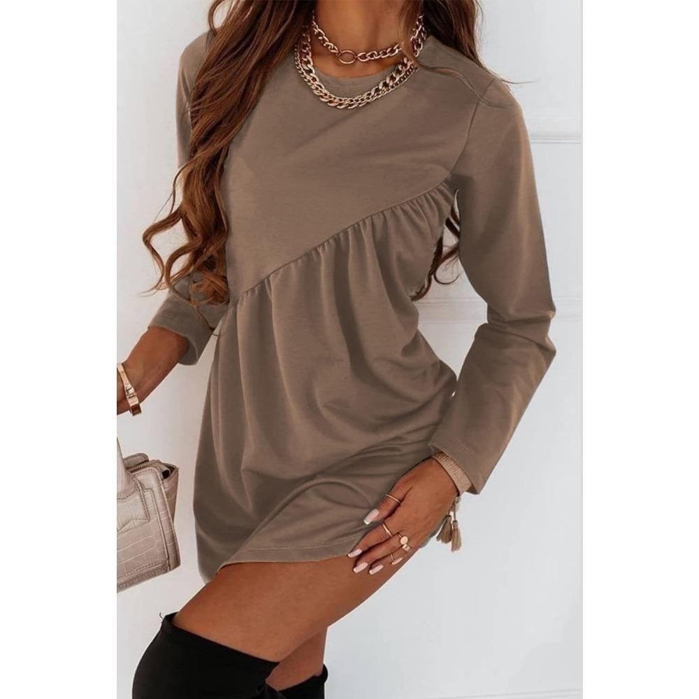 GMXIA Осенне-зимнее однотонное платье с длинным рукавом и нерегулярным круглым вырезом, длинное платье с футболкой для женщин, свитера