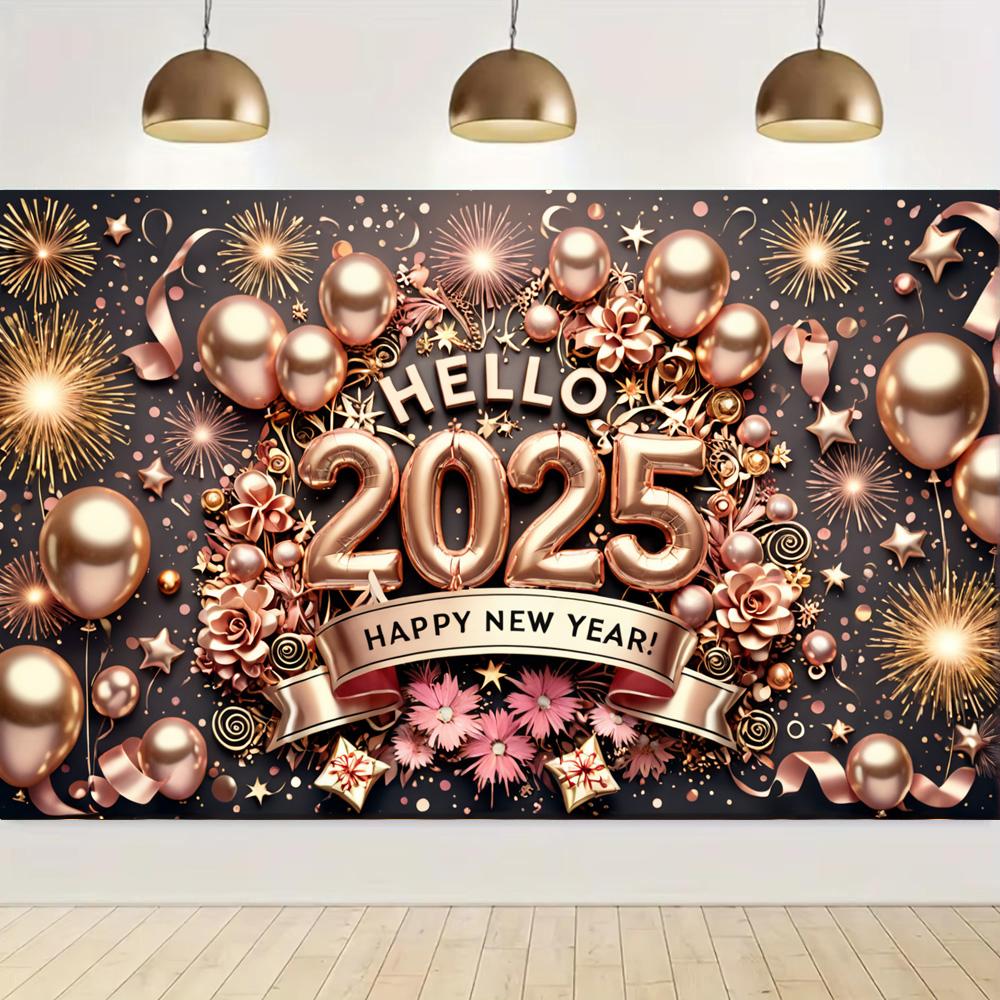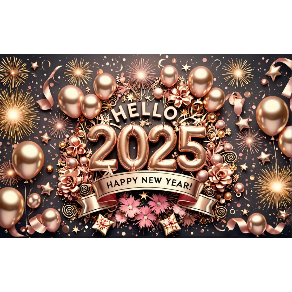 2025 С Новым годом Розовая роза Цветочная тематическая вечеринка Фон Воздушные шары Семейная вечеринка Баннер Украшение Фотография Фон