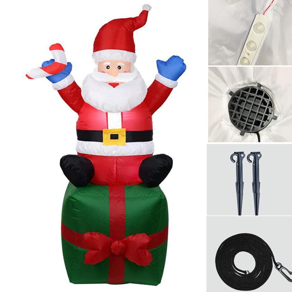 Рождественское уличное большое украшение 180 см Санта-Клаус, сидящий на подарочной коробке, воздушный шар со светодиодной подсветкой, рождественский декор для сада и двора
