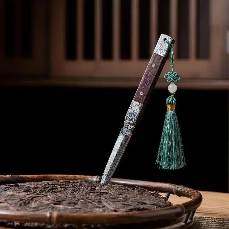 Чайный нож, чайная игла, ручной работы, черный сандал, дамасский узор, стальной нож, чайный сервиз, аксессуары