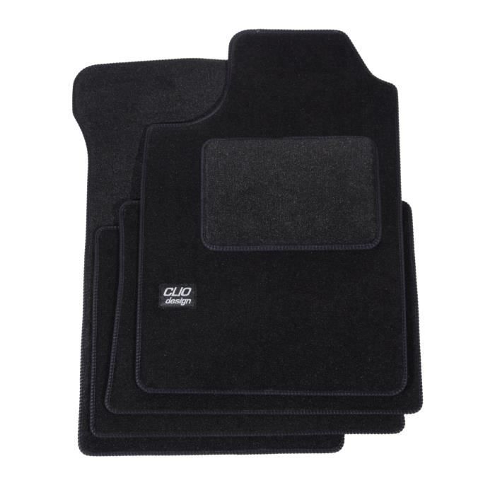 Tapis de Sol Velours - J&J AUTOMOTIVE - Renault Clio 2 - Antidérapant - Sur Mesure - 6-7 mm d'Épaisseur
