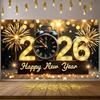 2025 Новогодняя тематическая вечеринка Фон Фейерверк Золотые шары Часы Баннер Украшения С Новым годом Семейные фото Принадлежности