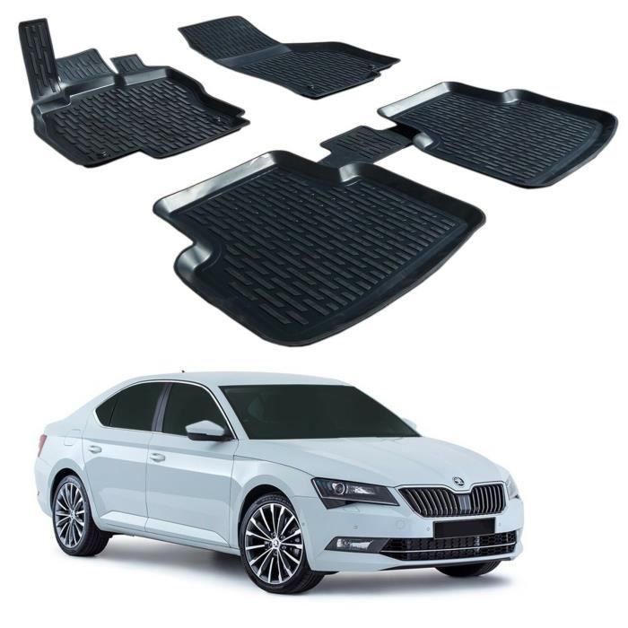 Tapis de sol 3D - SCOUTT - Skoda Superb 3 - Caoutchouc Premium - Noir - Sur mesure 2015-2023