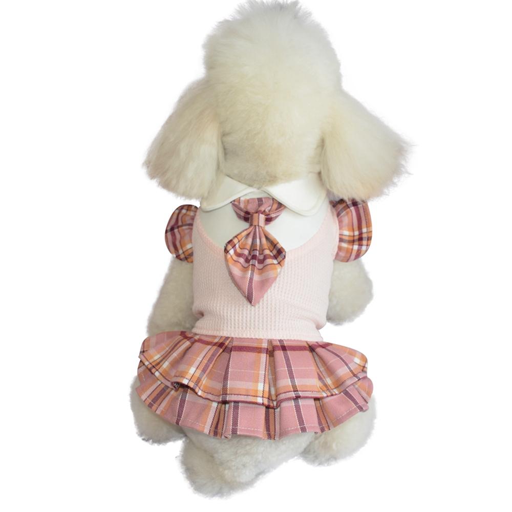 Весна ЛетоОдежда для собак Колледж Стиль Платья с галстуком для домашних собак Одежда для маленьких собак и кошек Клетчатая юбка-пачка Платье для щенков и девочек Костюмы