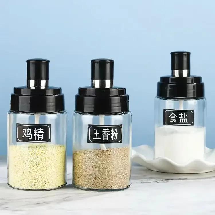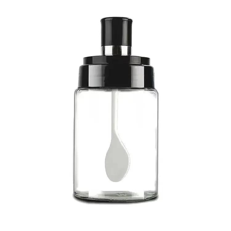 Удобный прозрачный контейнер, баночки для специй, бутылочка для приправ с ложкой, солонка и перечница, сахарница, стеклянная посуда, кухонные принадлежности