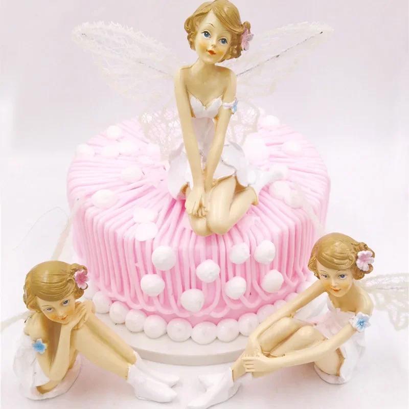 Настольный торт украшение Цветочная фея с крыльями Миниатюрные фигурки Ангел орнамент Садовые фигурки Подарки на день рождения DIY Домашний декор