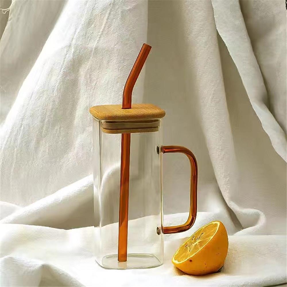 400 мл квадратный стеклянный стакан с бамбуковой крышкой и трубочкой высокотемпературный прозрачный стакан для кофе, холодного вина, колы, сока, воды, бытовой