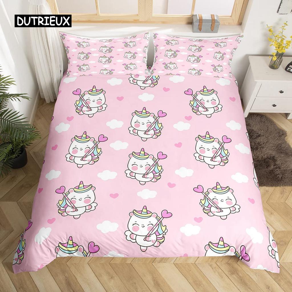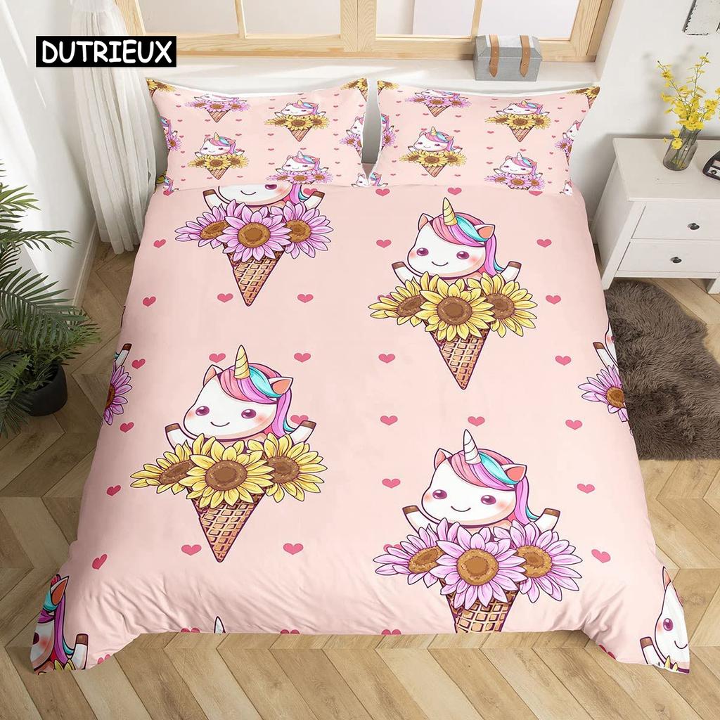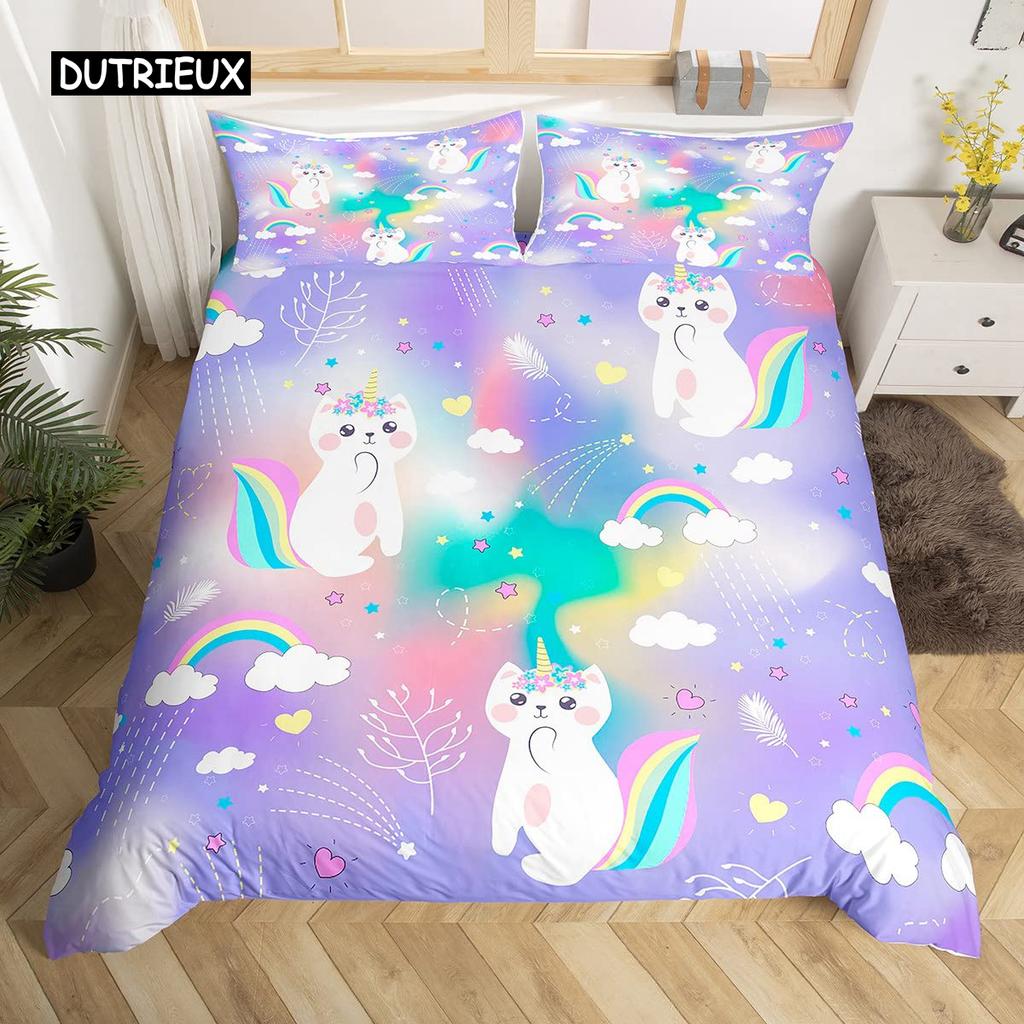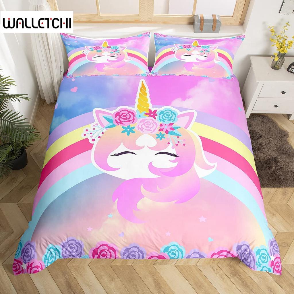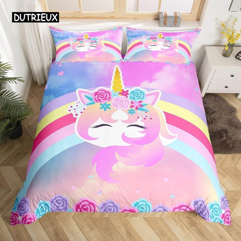 Пододеяльник с изображением радужного единорога, милый, мечтательный, с изображением лошади, комплект постельного белья с изображением маленького единорога, для девочек-подростков, милые подарки