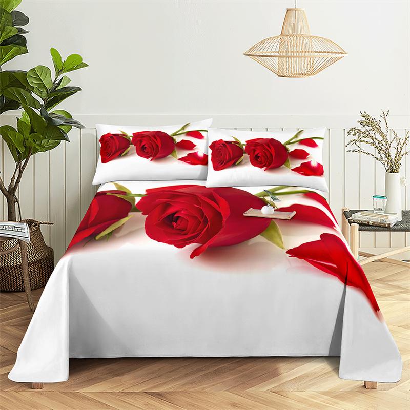 Главная Простыни Односпальная простыня с красными розами Модные простыни с цветами Комплект простыней размера «queen size» Простыни и наволочки