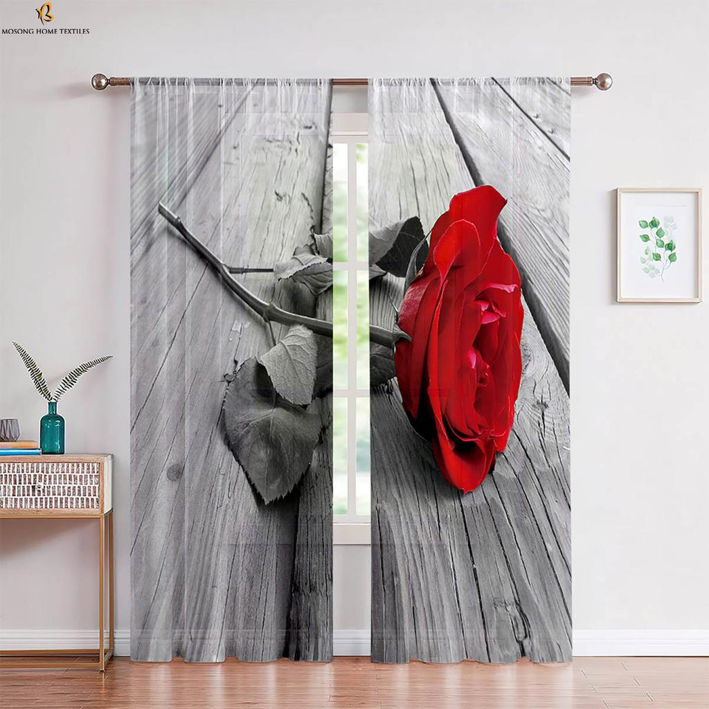 Красная винтажная роза, 3D-печатная занавеска для спальни, гостиной, кабинета, украшения окна, занавеска для украшения дома, 2 шт.