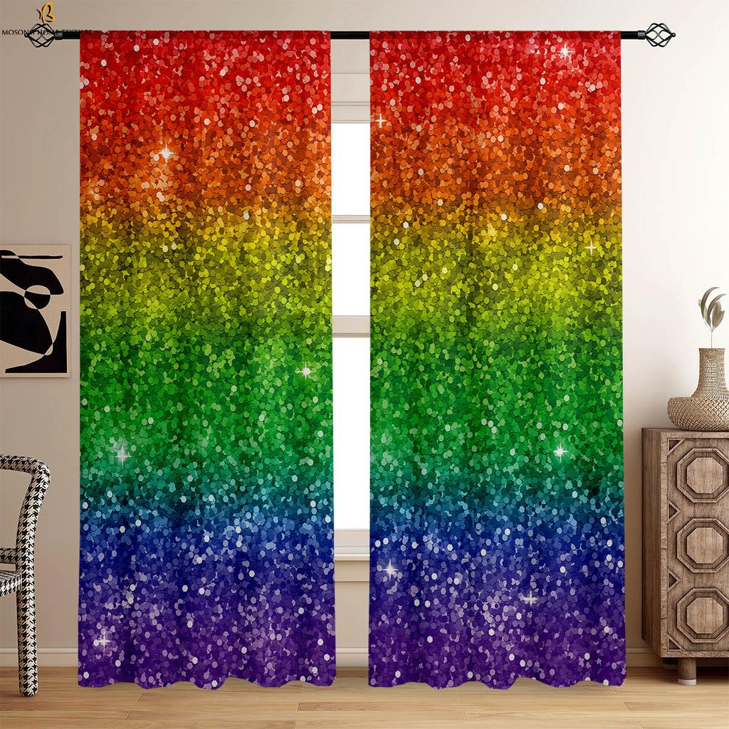 Радужные блестящие цветные напечатанные шторы 100% полиэстеровое волокно карнизные шторы спальня гостиная балкон декоративные шторы