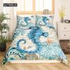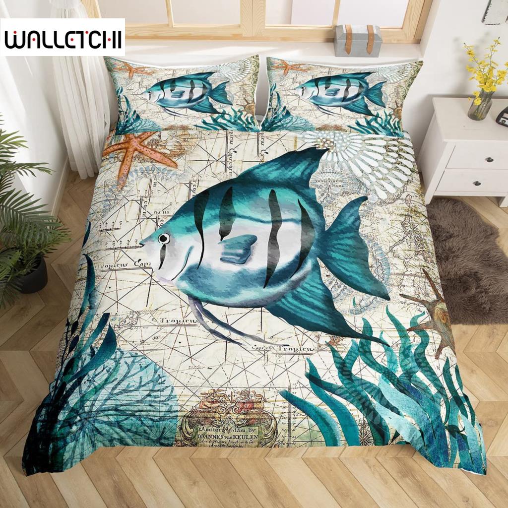 Пододеяльник с бирюзовым узором King Queen Ocean Spanish Mackerel Пододеяльник с изображением морского подводного мира Морская жизнь Комплект постельного белья из полиэстера