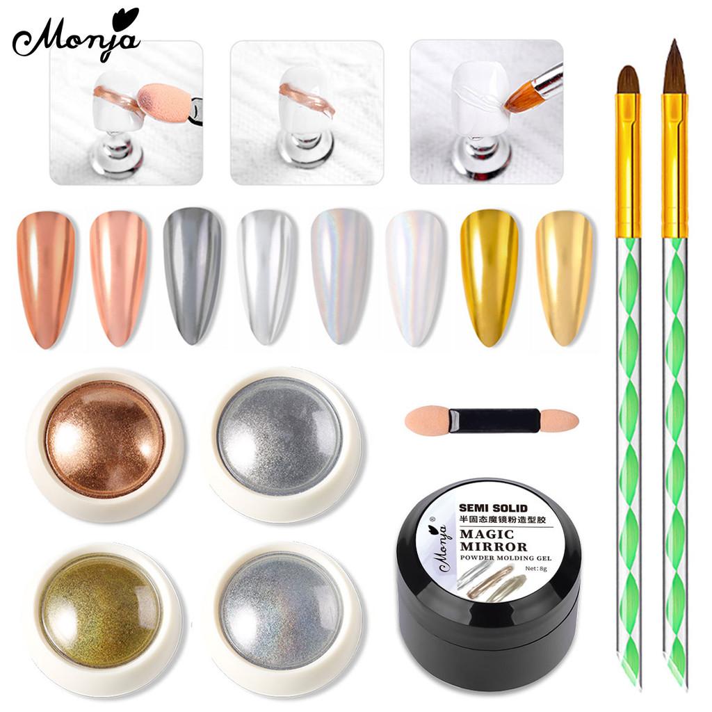 monja Набор для дизайна ногтей 5 шт./компл. Волшебная зеркальная пудра полутвердый волшебный формовочный УФ-клей 2 шт. губка-кисточка инструменты для дизайна маникюра