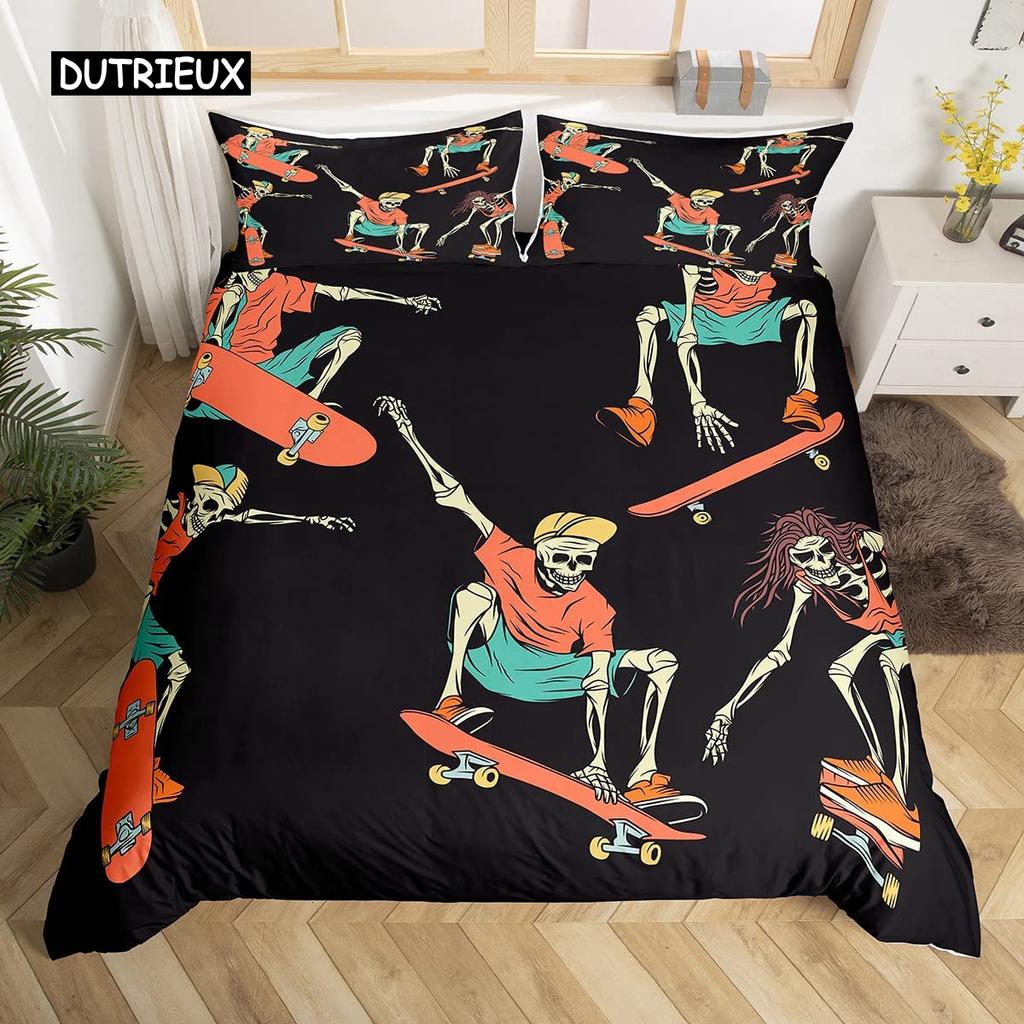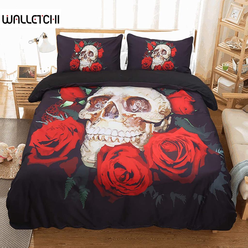 Комплект постельного белья с изображением черепа красной розы, комплект постельного белья с 3D-цветочным принтом черепа и застежкой-молнией, мягкий комплект постельного белья из микрофибры с готическим декором