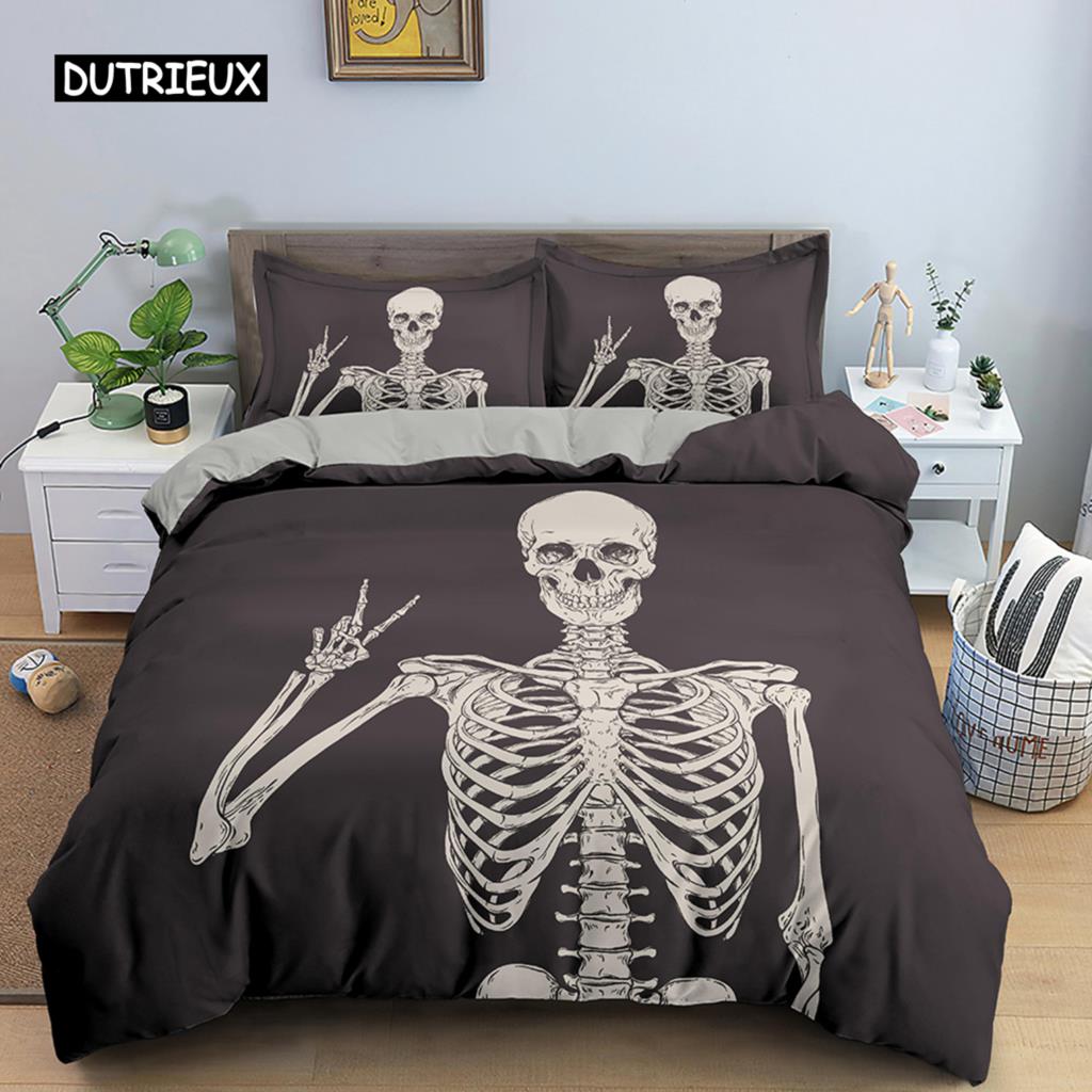 Комплект постельного белья с 3D-скелетом, пододеяльником и черепом, 2/3 шт., пододеяльник с наволочкой, размер Queen King, мягкое постельное белье из микрофибры