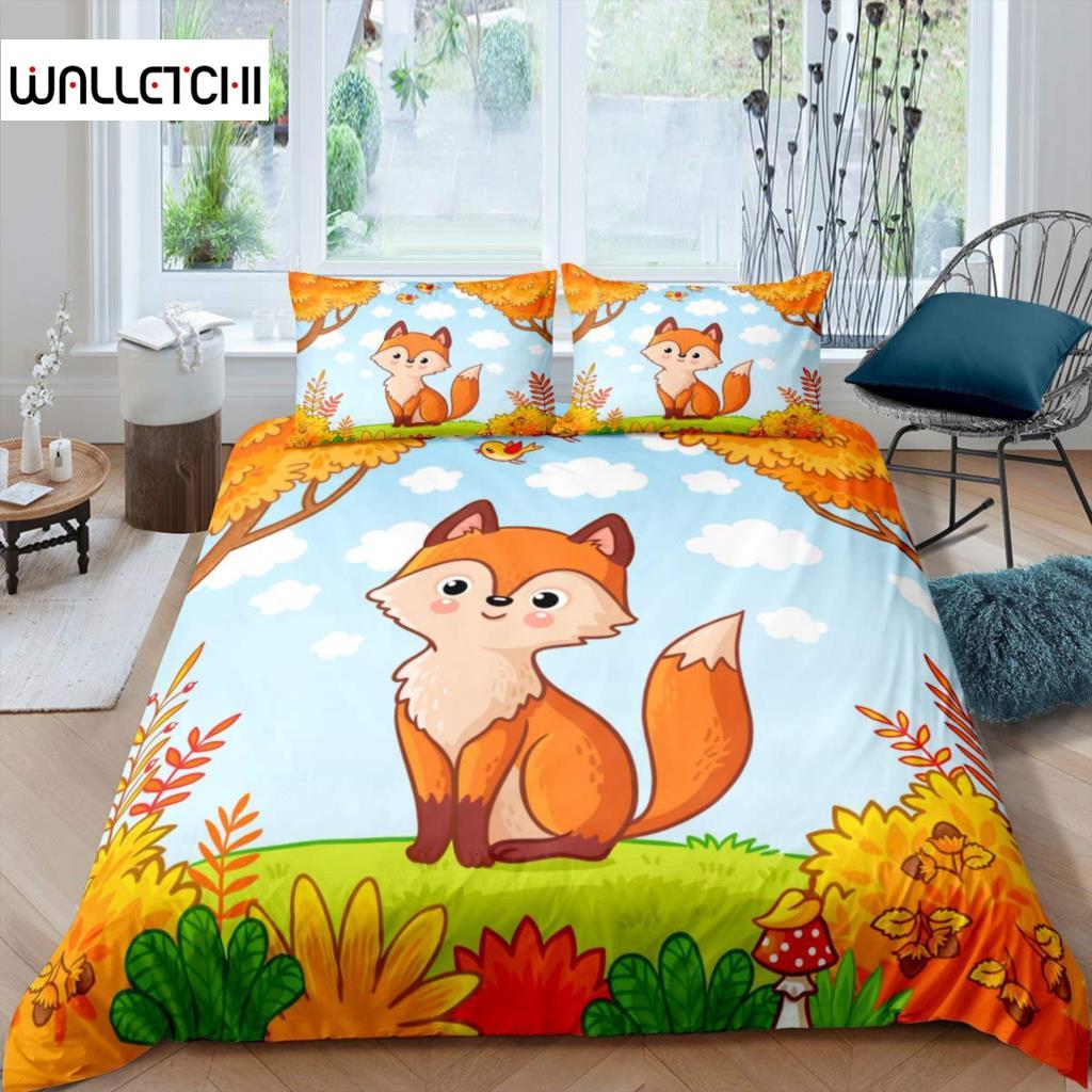 Комплект пододеяльников с лисой для девочек, комплект постельного белья с рисунком лисы, милый пододеяльник на тему животных для детей, подростков, King, полиэстер, пододеяльник