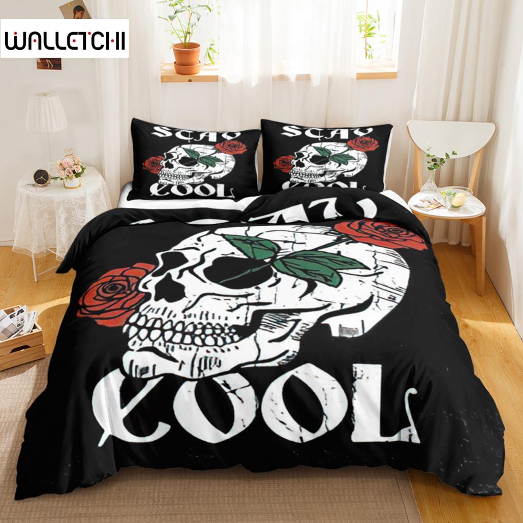 Пододеяльник с черепом Queen Size, готический скелет, комплект постельного белья, роза, полиэстер, одеяло, покрывало для детей, подростков, взрослых, Хэллоуин