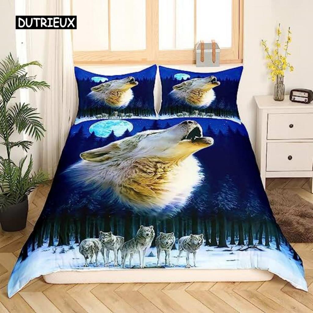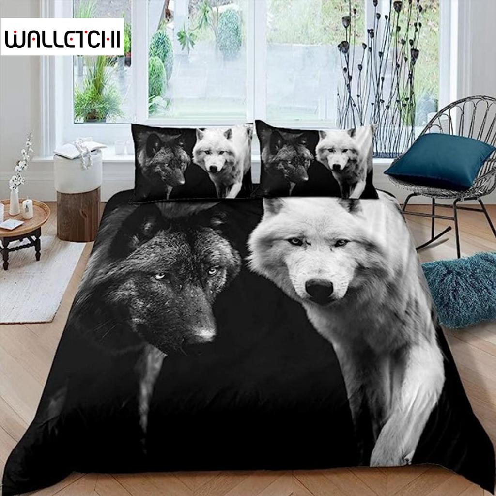Пододеяльник с изображением черного, белого волка и животных, комплект постельного белья 3D для взрослых и детей, украшения для спальни, мягкое одеяло из микрофибры в экзотическом стиле