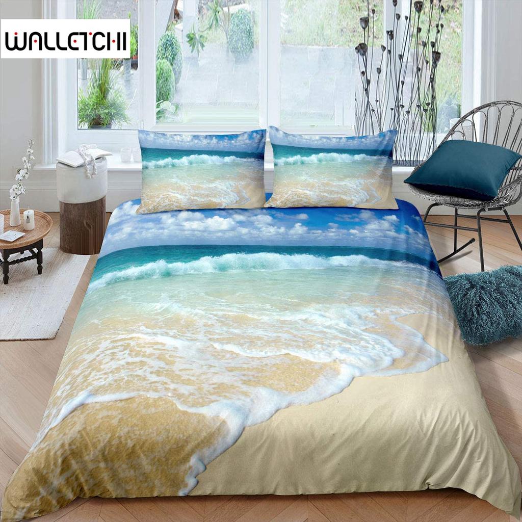 Комплект постельного белья Ocean Wave с изображением пляжа и пенистых волн, комплект постельного белья для двоих, полиэстер, морской берег, праздничная тема, королева, размер King Size, пододеяльник
