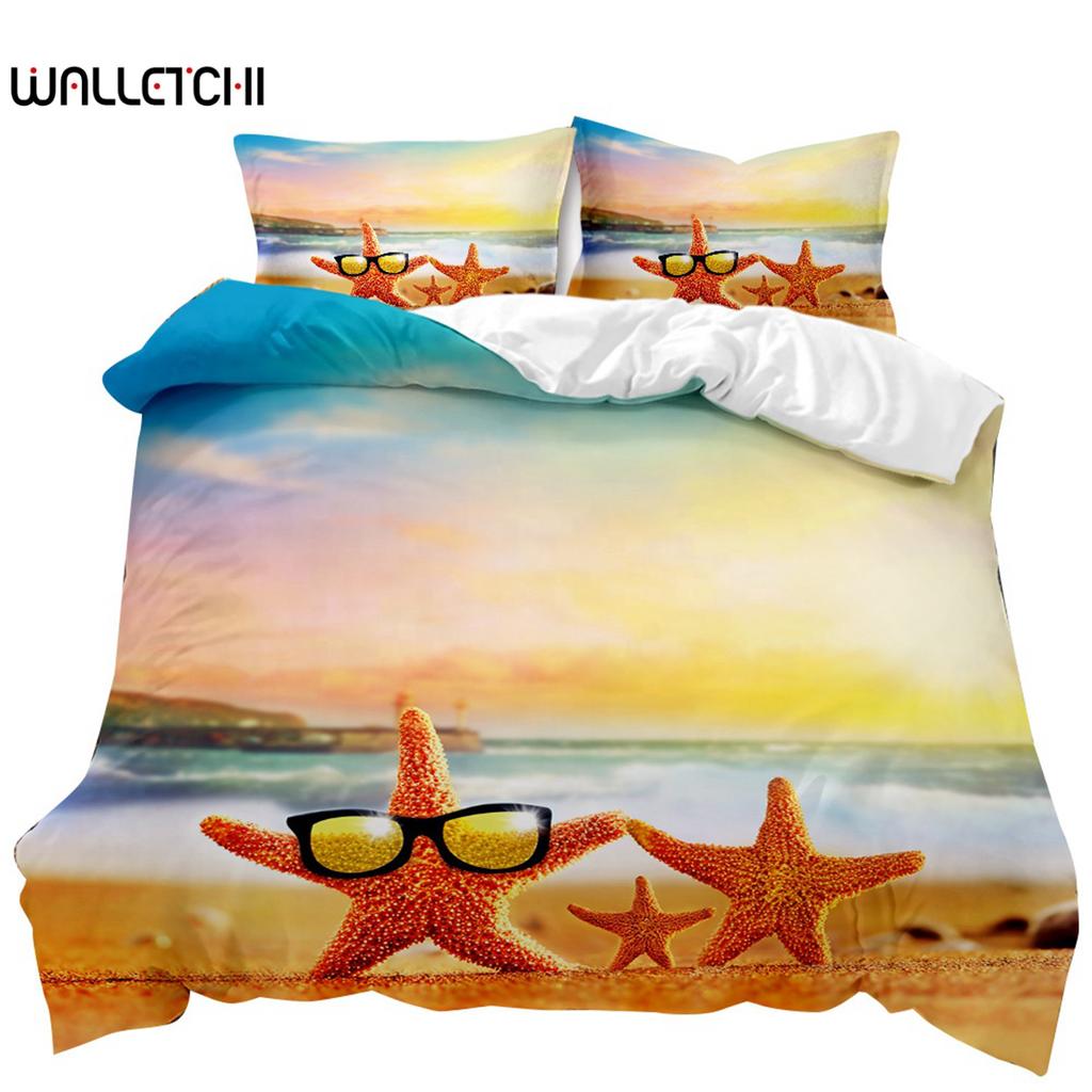 Комплект постельного белья Beach Summer Ocean Комплект постельного белья Hawaiian Marine Sea Waves 3D Print Starfish Полиэстеровый пододеяльник Queen King
