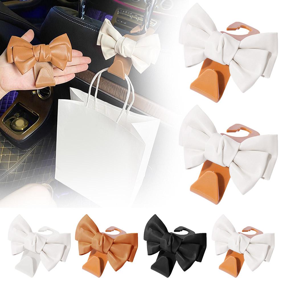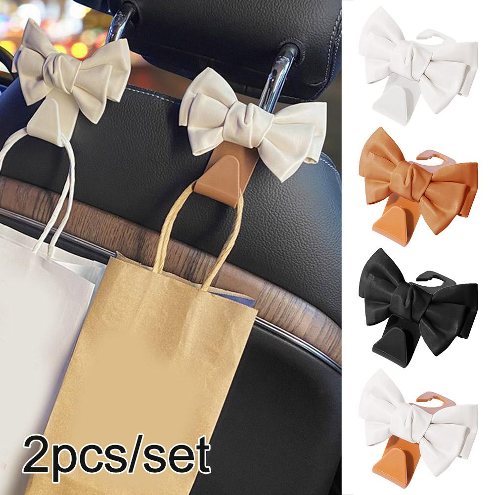 High Quality Bowknot Car Seat Back Storage Hooks Vehicle Headrest Organizer Hanger for Masks Groceries Bag Handbag Universa D1B9