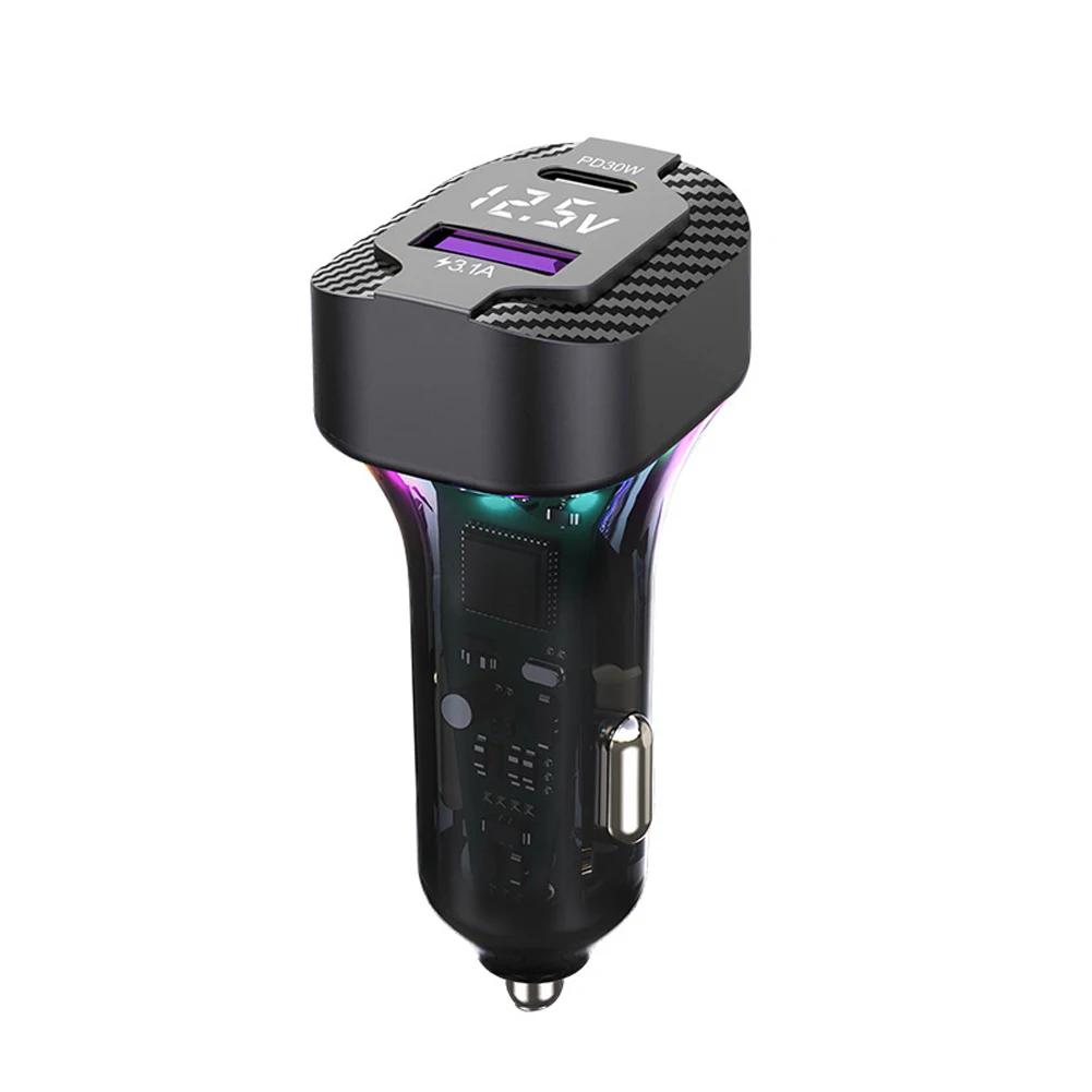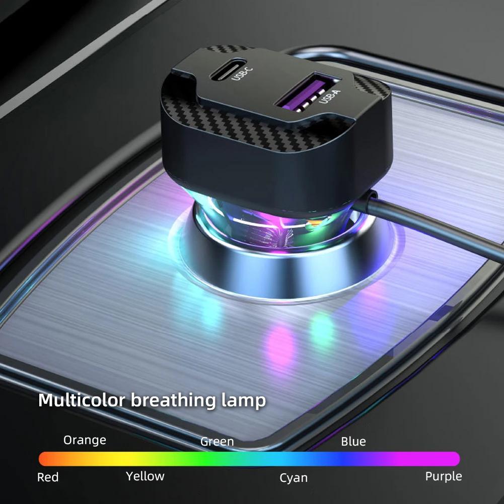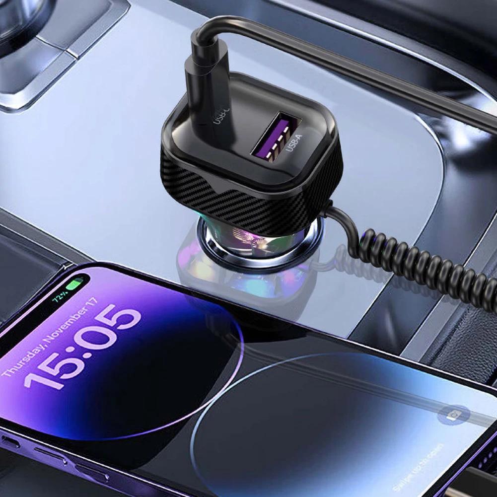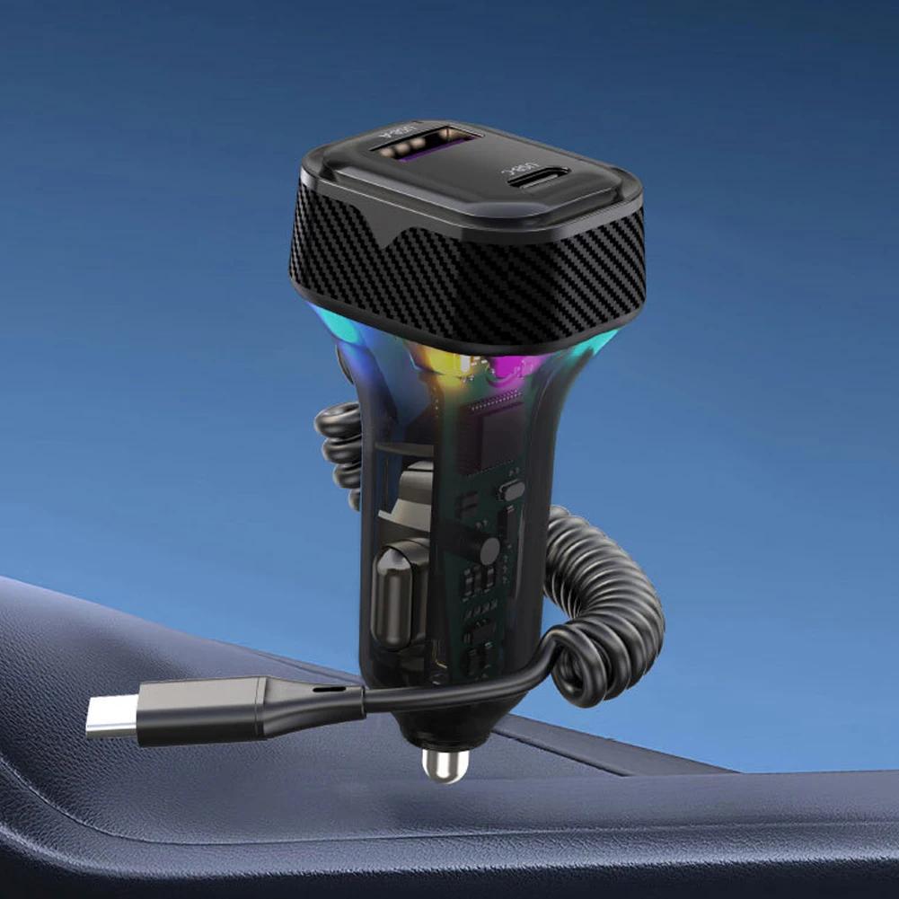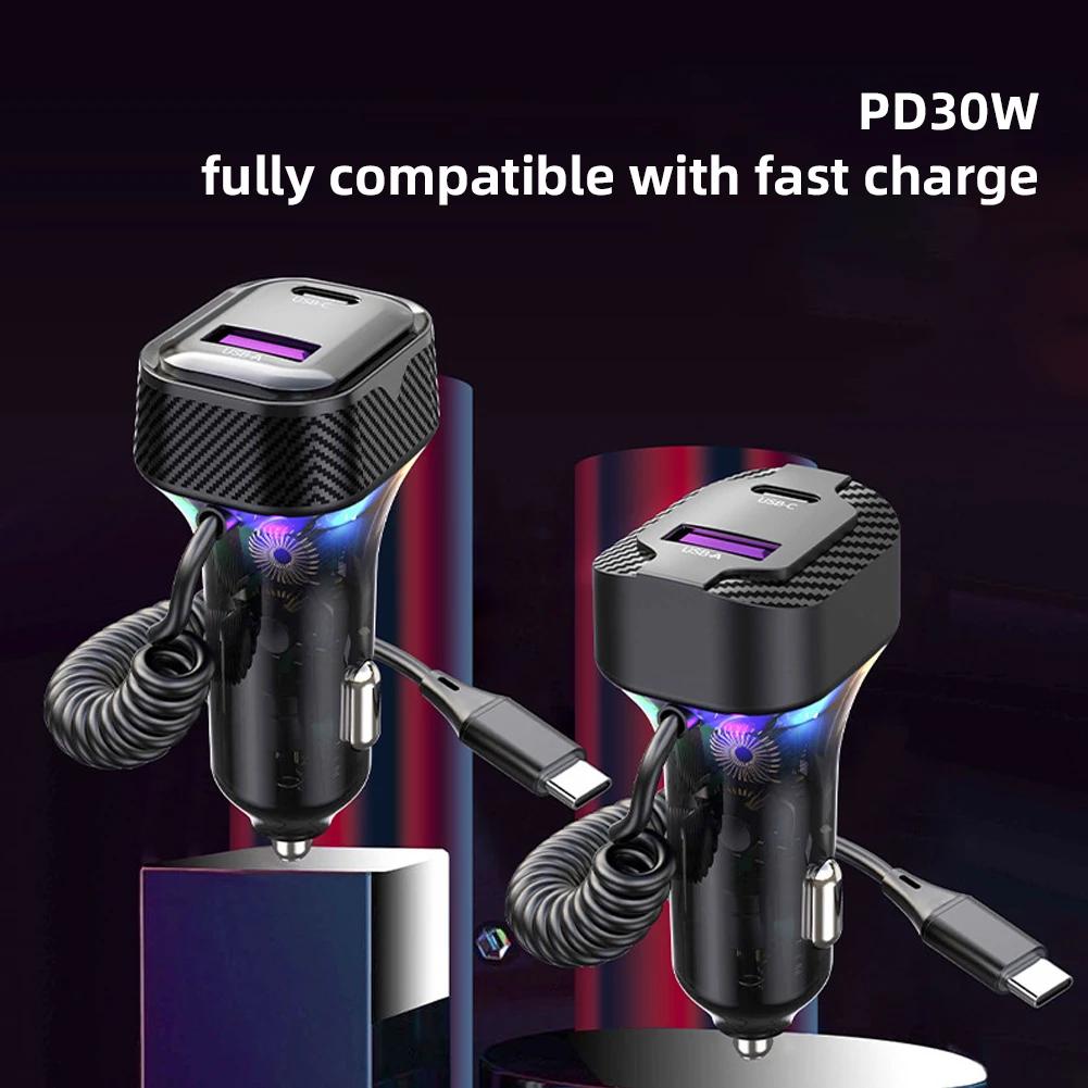 Автомобильное быстрое зарядное устройство с пружинной проволокой, атмосферный свет, прикуриватель, преобразователь PD 30 Вт, 3 выхода 12 В-24 В для камеры мобильного телефона