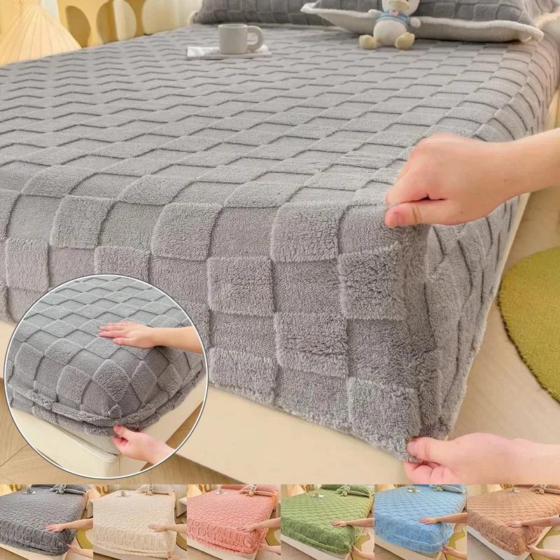 Утолщенная плюшевая простыня, зимний теплый чехол для матраса, пушистая плюшевая простыня, покрывало, клетчатый узор, бархатные простыни