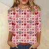 Женская повседневная свободная футболка с круглым вырезом и принтом ко Дню святого Валентина с рукавами три четверти