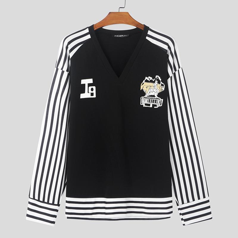 INCERUN Мужские топы с V-образным вырезом и длинным рукавом, повседневные полосатые футболки в стиле пэчворк — купить товар онлайн с бесплатной доставкой до всему миру!