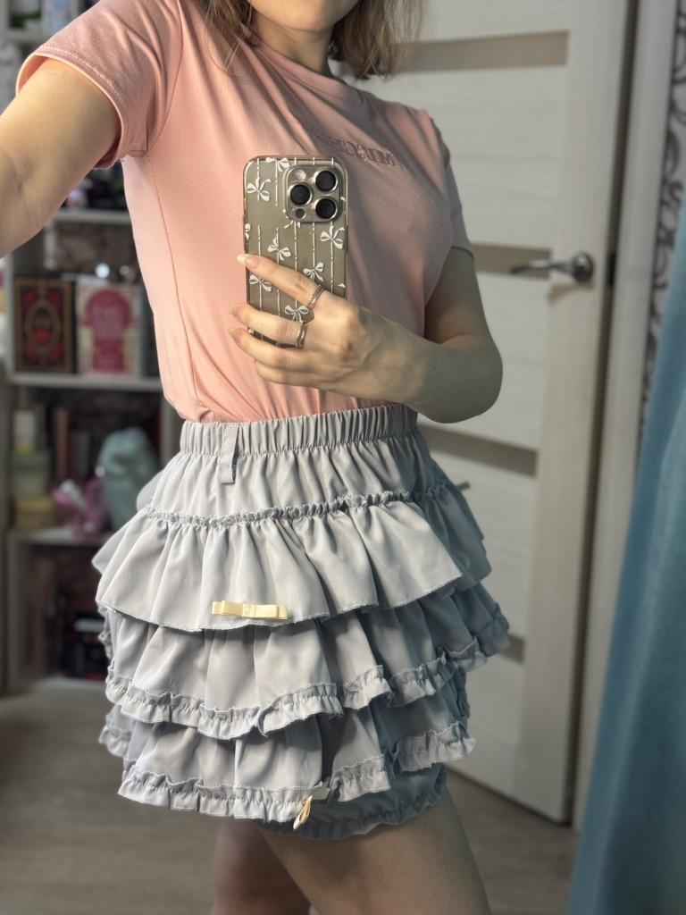 Милейшая лолита-юбка 🍓 Все эти рюшечки-складочки, ух, у меня определенно слабость к таким вещам. Так что снова не удержалась, снова не держали меня семеро… - Ткань плотненькая, полиэстер, не выглядит дешево за счет того, что ткани много и рюшечки объемные; - Снизу есть защитные шортики аля панталоны, что удобно, ведь искать другие шорты не надо :) - Поясок на резинке, за счет чего в юбке комфортно и нигде ничего не тянет. Также на поясе есть шлевки, если захочется надеть какой-то пояс и скрыть резинку; - По бокам есть милые маленькие бантики, но я думаю еще добавить (главное, не переборщить). В общем и целом — советую для любителей такого стиля) Милашка) Но обратите внимание, что посередине идет шов, что визуально делает вещь и похожую на шорты, и на юбку одновременно)