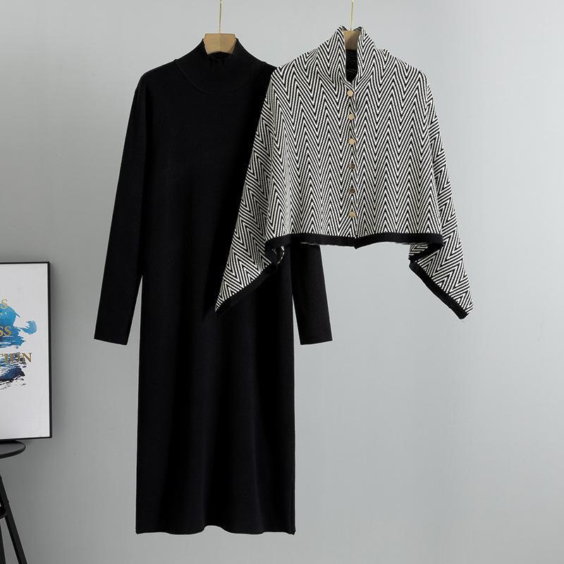 Женское платье больших размеров в стиле темперамент, осеннее трикотажное утягивающее пальто-шаль, длинное платье, костюм из двух частей