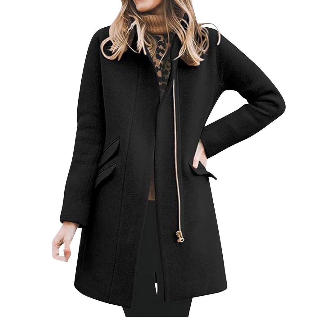 Женское зимнее теплое длинное пальто, классическое повседневное пальто с застежкой-молнией спереди