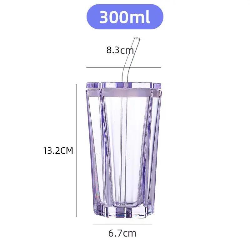 1 набор стеклянных чашек с соломинкой и крышкой, пятиконечная звезда, стеклянная градиентная кружка для холодных напитков, ледяного кофе, кружка для напитков, настольный декор