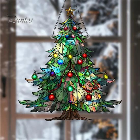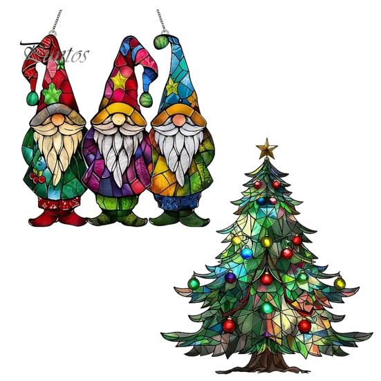 Рождественский акриловый ловец солнца, красочная рождественская елка/гном, подвесное украшение на окно, ловец света для наружного балкона, домашний декор