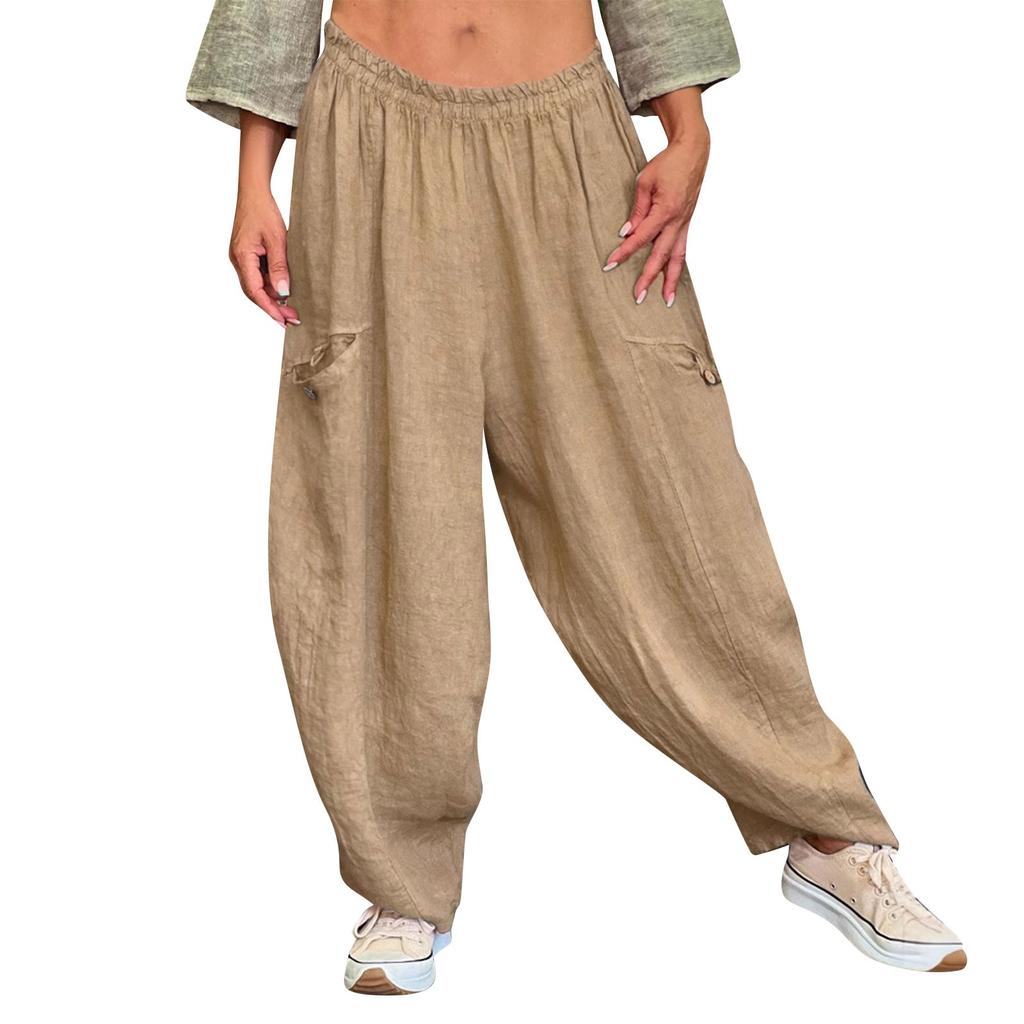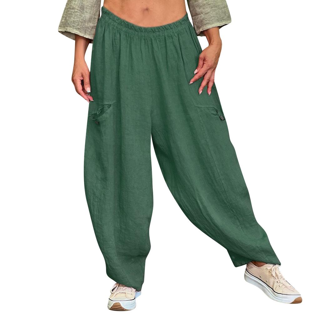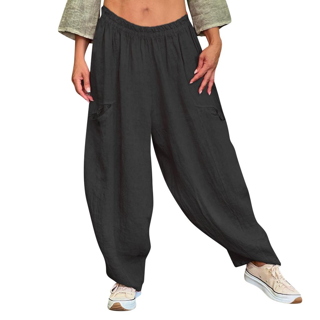 Женские модные брюки однотонные повседневные брюки с эластичной резинкой на талии и карманами