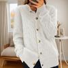 Женская мода однотонный длинный рукав круглый вырез вязаный кардиган пуговиц свитер куртка