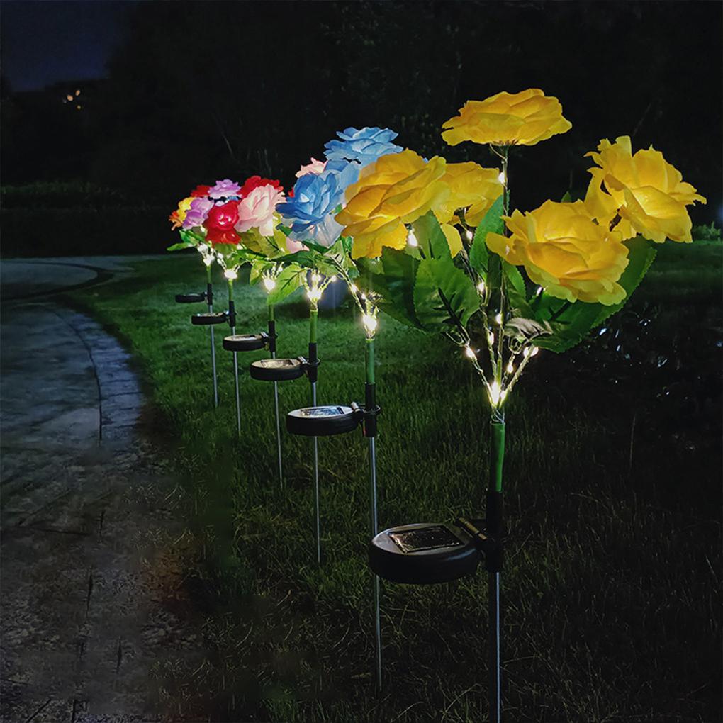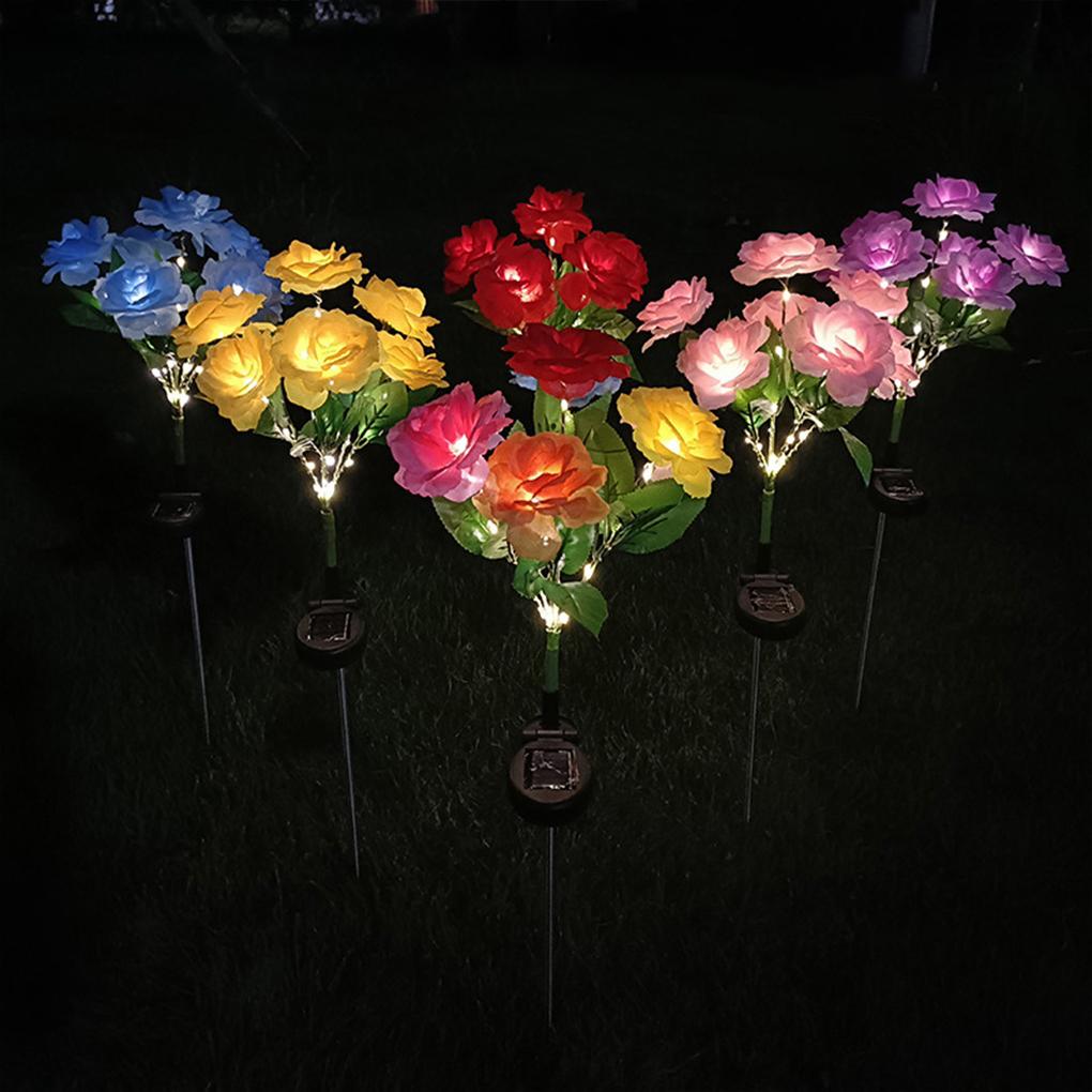 7-головочный солнечный имитационный светильник в виде цветка розы, уличный водонепроницаемый светильник IP65 с заземлением для цветов, украшение для вечеринки на лужайке в саду