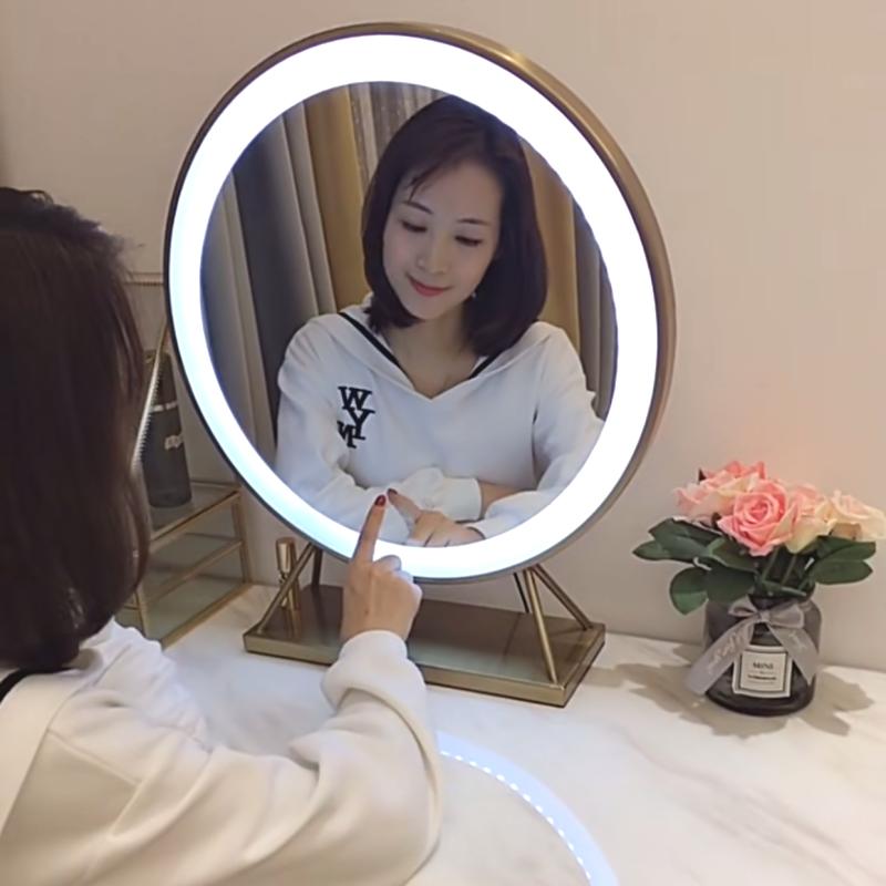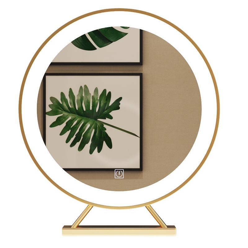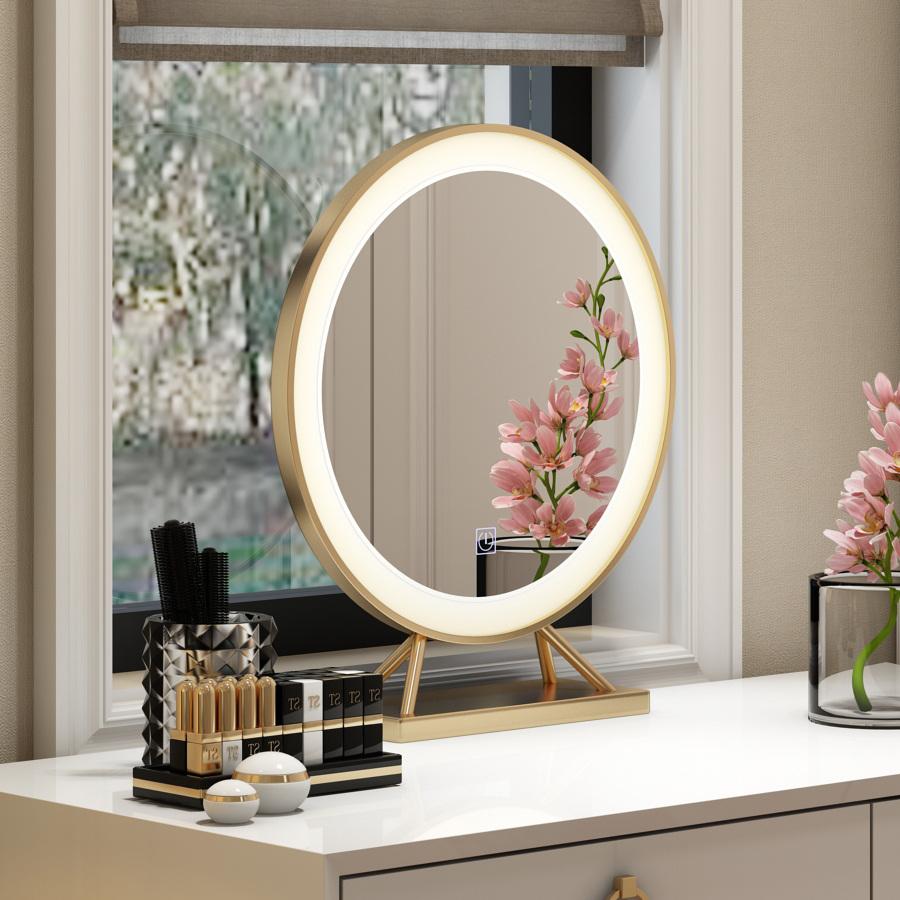 Диаметр 40 50 см Золотое умное светодиодное зеркало для макияжа, спальня, отель, настольный декор, круглый с подсветкой, трехцветный источник света, база для хранения
