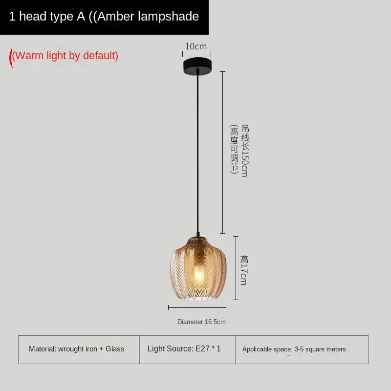 Люстра из янтарного/серого стекла для ресторана, светодиодная лампа E27, современный минималистский индивидуальный прикроватный светильник в скандинавском стиле для спальни, бара, лестницы