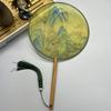 Китайский круглый веер с деревянной ручкой, портативный напечатанный винтажный шелковый веер, древний веер с кисточками для танцев, костюм Тан, праздничный атрибут