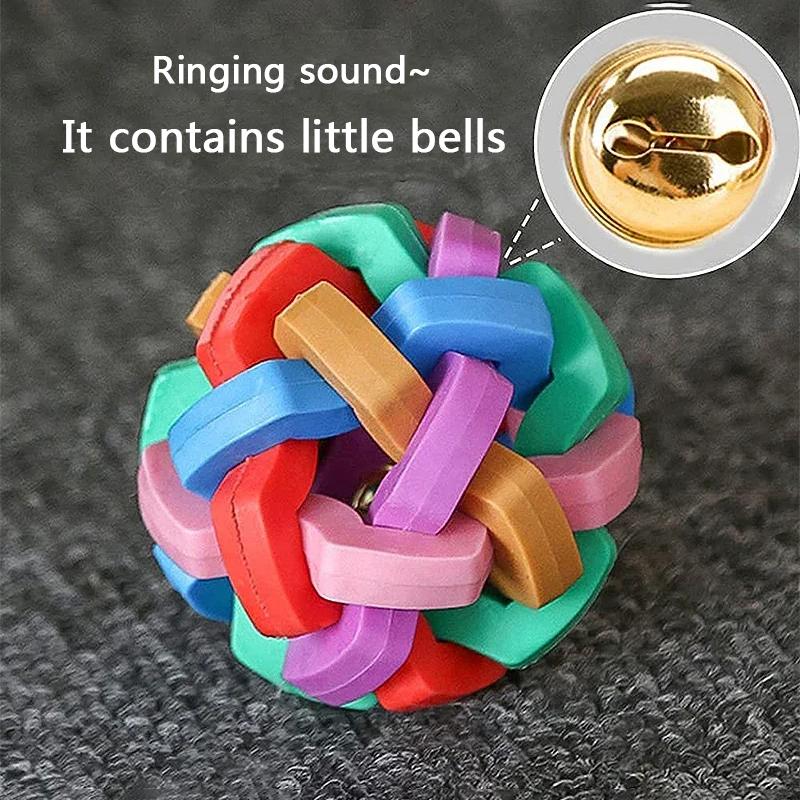 Игрушка для домашних животных, цветной мяч-колокольчик, термопластичный макаронный плетеный мяч-колокольчик, эластичный мяч для кошек и собак, игрушка для скрежетания зубами и защиты от укусов
