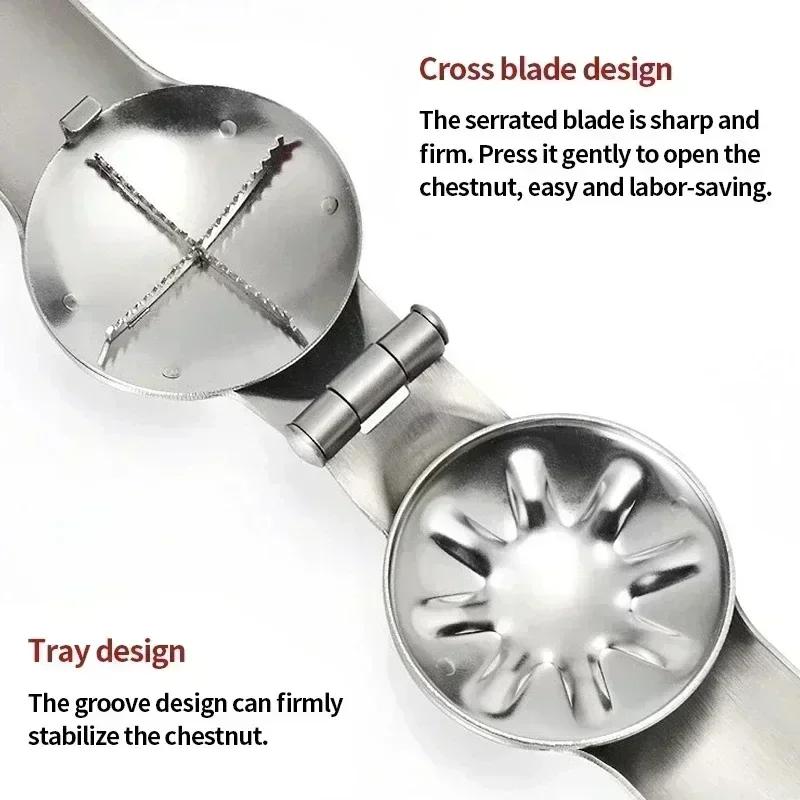 Эргономичный дизайн - зажим для каштанов имеет гладкую поверхность, нескользящую ручку, удобный и практичный, не повреждает руку при очистке орехов.