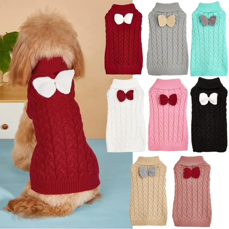 Свитер с высоким воротником для питомца, однотонный свитер с кручеными жареными кусочками теста, вязаный многоцветный, удобный, на осень, зиму, на Рождество, для питомца