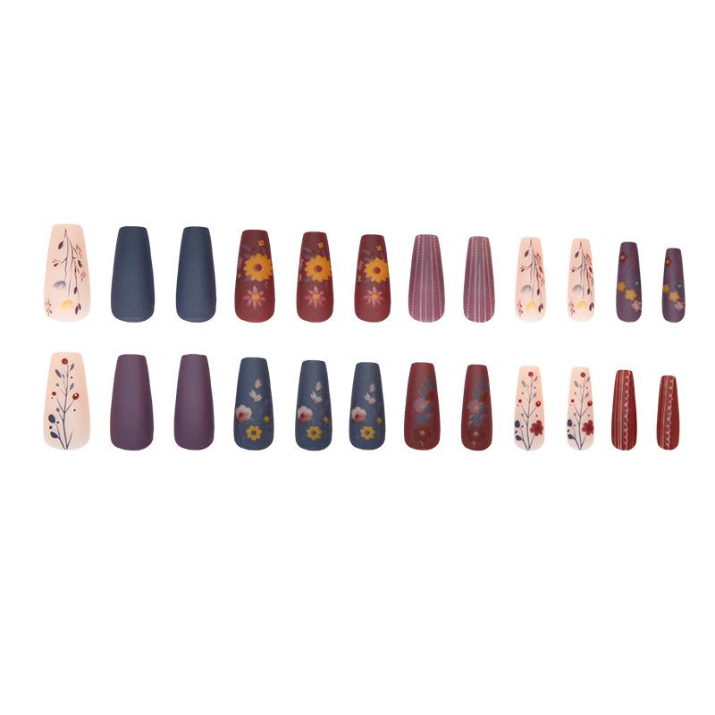 Носите ногти Jumping Color Retro Matte Flower Stripe Универсальный Нежный Съемный Маникюр для ногтей 24 шт.
