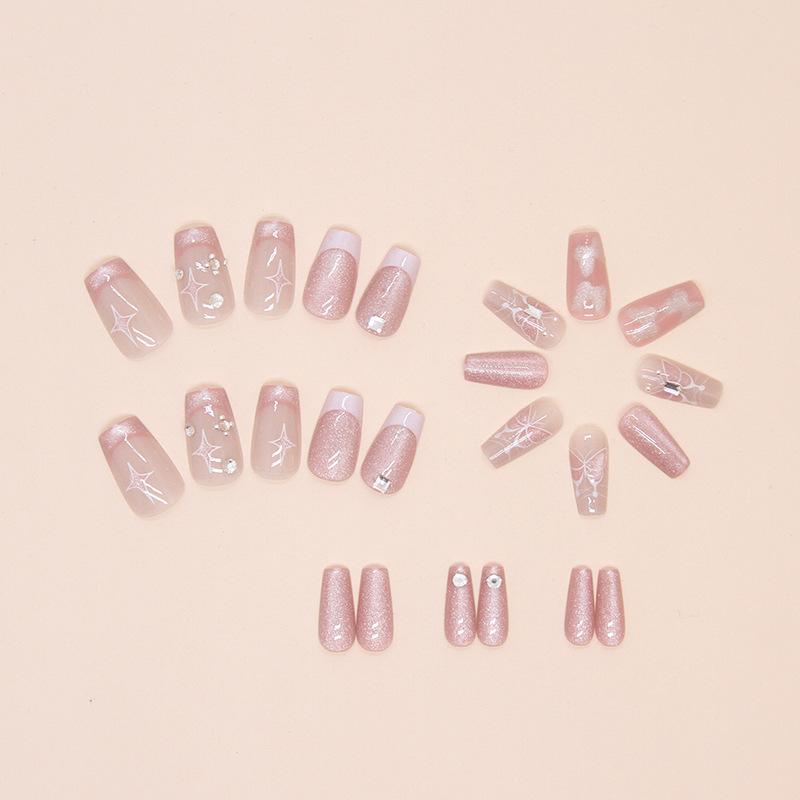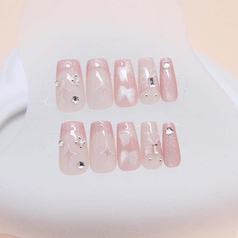 Французский светлый чеканка кошачий глаз ноготь съемный ноготь ноготь Звезда милый свежий бабочка ноготь