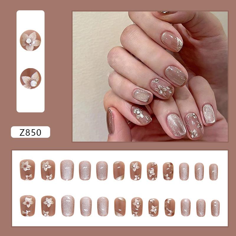 Светлая погоня кошачий глаз ноготь съемный ветер наклейка на ноготь цветок короткая Т-образная наклейка на ноготь 24 шт