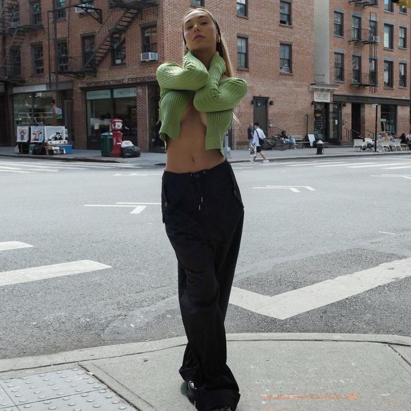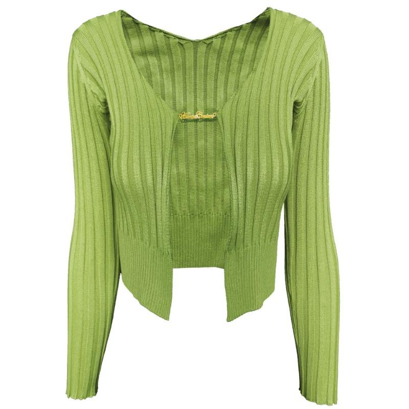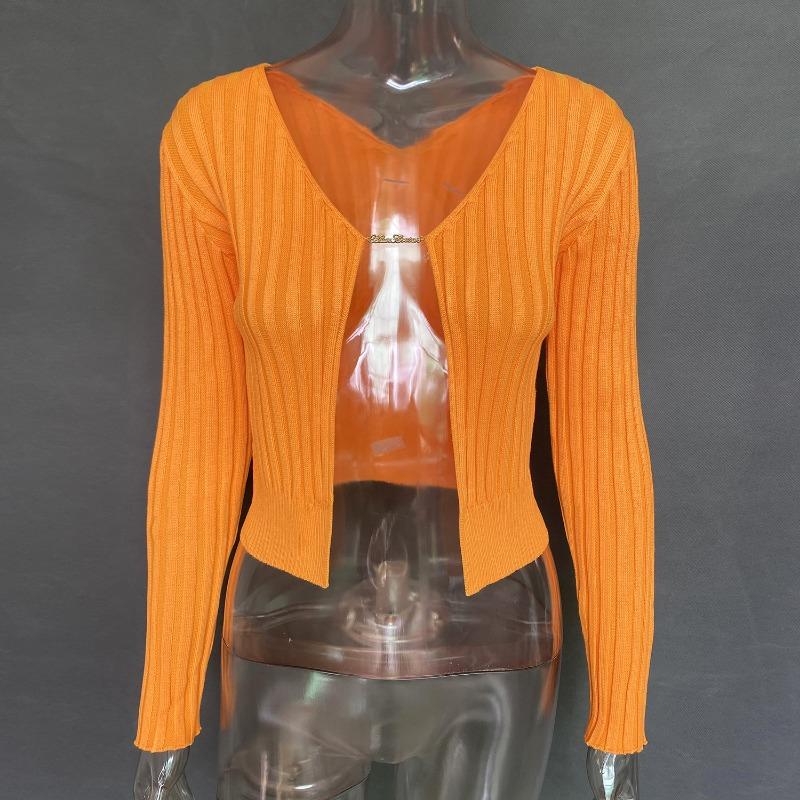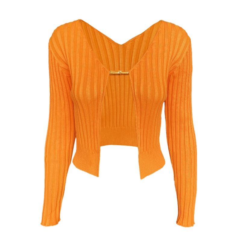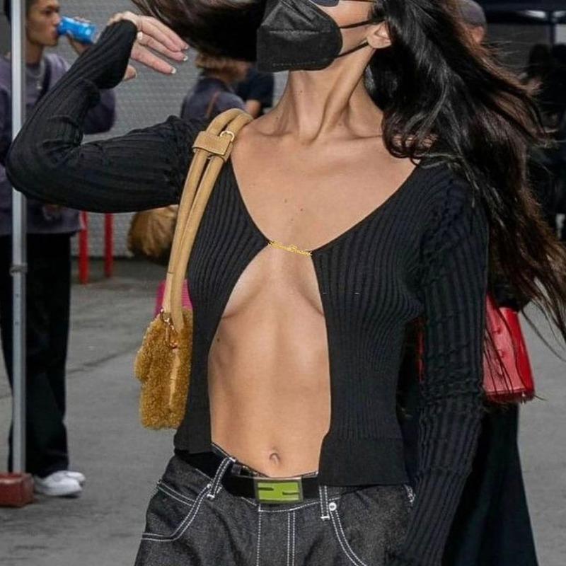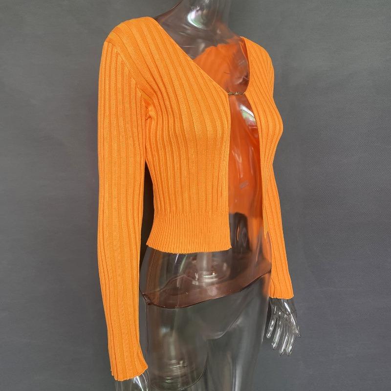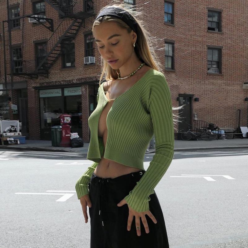 Женский осенне-зимний сексуальный глубокий V-образный вырез с длинными рукавами и золотой этикеткой, вязаный кардиган-свитер